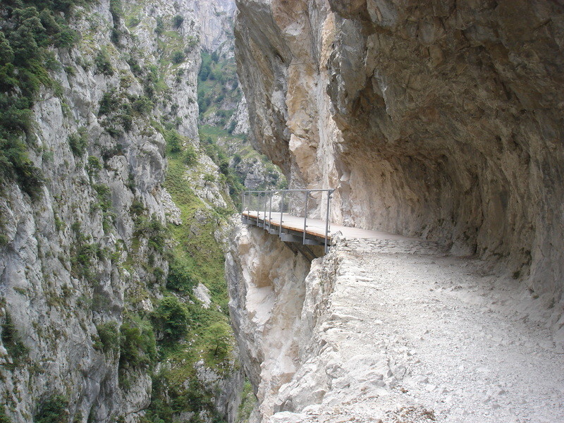 Cares, y se trata de un camino a media altura que se abrió entre 1945 y 1950 en la roca para el mantenimiento del canal de alimentación de la central hidroeléctrica de Camarmeña-Poncebos; fue construido este canal entre el año 1916 y 1921.