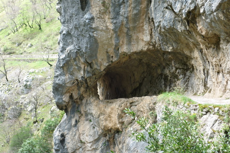 La ruta del Cares discurre por la Garganta Divina del río Cares, y se trata de un camino a media altura que se abrió entre 1945 y 1950 en la roca para el mantenimiento del canal de alimentación de la central hidroeléctrica de Camarmeña-Poncebos; fue construido este canal entre el año 1916 y 1921.